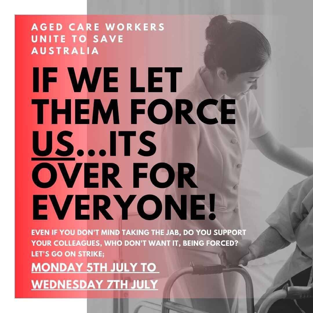 Best way to conquer something when you’re outnumbered is to divide and conquer and do it in stages. Hence now they say aged care workers and once they’ve all been forced into it, then it will be into the next industry and so on.